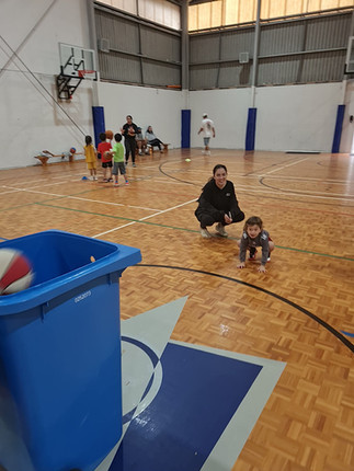 Some children jump straight onto the court. Some like to stand close to mum or dad for a little while first. Some want to watch before they join. All of that is okay.
